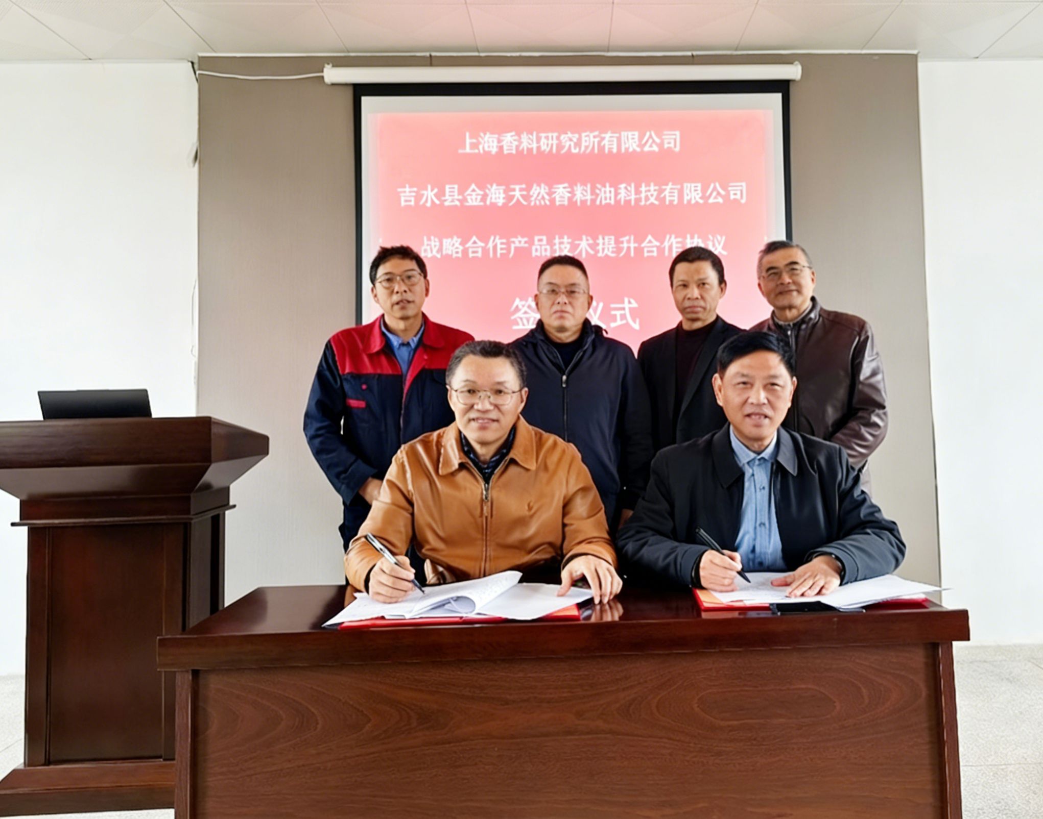 12月13日,在江西省吉水县金海天然香料油科技有限公司会议室举行的签约仪式上,上海香料研究所有限公司与吉水县金海天然香料油科技有限公司正式签署了“莪术油与八角茴香油高效生产与质量控制”协议。此次签约标志着上海香料研究所有限公司与吉水县林化香料产业的产学研战略合作又有了新的进展,上海香料研究所吉水研发中心进入实际运行阶段,同时也标志着签约双方在药用精油提取与质量控制方面的科技合作取得卓有成效的推进。依托上海香料研究所有限公司在该领域基础研究及工程技术方面的深厚优势,双方的共同努力将推动吉水县金海天然香料油科技有限公司在药用精油产业的技术创新、提质增效上取得更大的成果。